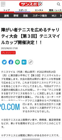 【第3回】テニスマイルカップがサンスポに掲載されました。